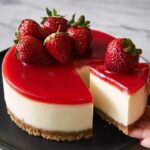This Perfect Cheesecake with Strawberry Topping is a creamy, rich, and classic American dessert. Featuring a buttery graham cracker crust, smooth cream cheese filling, and a fresh strawberry topping, it’s baked in a water bath to ensure a crack-free, silky texture. Ideal for special occasions or indulgent treats, it’s best served chilled and sliced into 12 generous portions.