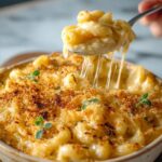 7. Bake with Topping: Preheat your oven to 350°F (175°C). Transfer the mac and cheese mixture into a greased baking dish. Sprinkle the panko bread crumbs evenly over the top for a crispy crust. Bake for 15-20 minutes until the topping is golden brown and the cheese sauce is bubbly.