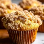 Pop your muffin tin into a preheated oven at 350°F (175°C) and bake for 20 to 25 minutes. You’ll know they’re done when a toothpick inserted in the center comes out clean and the streusel looks golden and slightly crisp. Let the muffins cool briefly in the pan before transferring to a wire rack — patience here means they won’t crumble when you bite in!