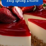 Finally, spoon the luscious rhubarb and strawberry topping evenly over your chilled cheesecake. The vibrant colors create a breathtaking contrast against the creamy white filling, making it almost too pretty to eat. Serve chilled for the best texture and a refreshing burst of flavor in every bite.