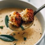 6. Add Cream: Stir in the heavy cream or coconut milk to enrich the soup’s texture. Adjust seasoning with salt and pepper to taste. Warm the soup over low heat for an additional 5 minutes, stirring occasionally to prevent sticking.