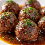 These Savory Beef Meatballs in Mushroom Sauce offer a comforting and hearty meal featuring tender homemade beef meatballs simmered in a rich, creamy mushroom sauce. Perfectly browned and cooked to juicy perfection, these meatballs combine Parmesan and garlic for extra flavor, while the mushroom sauce adds a luscious finish. Ideal for serving over mashed potatoes, rice, or pasta, this dish makes for a satisfying and easy dinner ready in just 35 minutes.