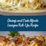 Delicious Shrimp & Crab Alfredo Lasagna Roll-Ups combine tender lasagna noodles with a creamy ricotta and seafood filling, topped with rich Alfredo sauce and melted mozzarella. This oven-baked dish is perfect for a comforting family meal with elegant flavors of fresh seafood and Italian cheese.