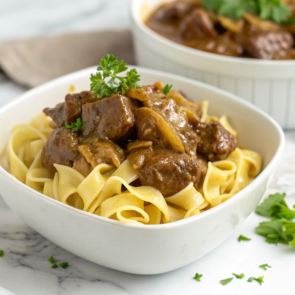 Yes, but you’ll need to simmer the beef and gravy gently on low heat for about 1.5 to 2 hours until the beef is tender, then prepare noodles separately. The slow cooker just makes it easier and hands-off.