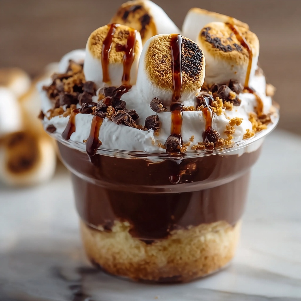 Delight in these no-bake S’mores Pudding Cups, combining creamy chocolate pudding, crunchy graham cracker crumbs, and fluffy marshmallows for a fun, easy dessert that captures the classic campfire flavor without the fire.