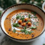 This Spiced Butternut Squash and Sweet Potato Soup is a warm and comforting dish perfect for chilly days. Roasted to bring out natural sweetness, the squash and sweet potatoes are blended with aromatic spices like cumin, cinnamon, and cayenne for a gently spiced, creamy soup. Coconut milk adds a luxurious texture while fresh cilantro garnishes brighten each bowl. This easy-to-make soup is both nutritious and flavorful, ideal as a starter or a light meal.