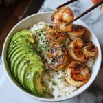 This Spicy Shrimp and Avocado Rice Bowl is a flavorful, nutritious meal combining tender shrimp seasoned with a smoky, spicy blend, fluffy jasmine rice, creamy avocado, and fresh vegetables. Topped with a zesty sriracha Greek yogurt sauce, it’s a perfect quick and easy dinner bursting with vibrant flavors and texture.