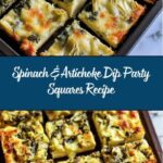 These Spinach & Artichoke Dip Party Squares are a delicious, crowd-pleasing appetizer featuring a creamy blend of cheeses, artichoke hearts, and spinach baked over a flaky crescent roll or pizza dough crust. Perfect for parties or casual gatherings, these bite-sized squares are easy to make and packed with savory flavors.
