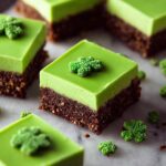 Package your fudge squares in small clear boxes or wrap them in festive green cellophane tied with gold ribbon—perfect for gifting. You can also arrange them on a themed dessert tray with shamrocks and leprechaun accents for an eye-catching party centerpiece.