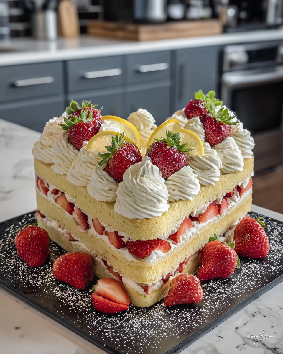 To elevate your Strawberry Lemon Layer Cake Recipe, decorate with fresh strawberries and thin lemon slices on top. These garnishes add a pop of color and a hint of freshness that invite everyone to dig in.
