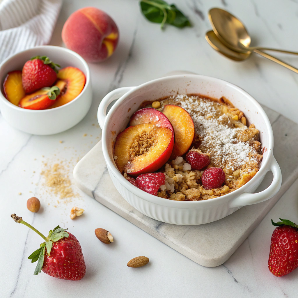 Strawberry Peach Crisp Dessert is a delightful summer treat combining sweet, juicy strawberries and peaches with a crunchy oat and almond topping. Perfect served warm with vanilla ice cream or chilled as a refreshing snack, this crisp offers a balance of fruity freshness and comforting texture. Ideal for anyone seeking a light yet satisfying dessert with room for customization using cinnamon, nuts, or berries.