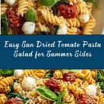 Serve the Sun Dried Tomato Pasta Salad Recipe in a vibrant, shallow bowl or a rustic wooden dish to highlight its colorful ingredients. For parties, individually portion it into cute mason jars for grab-and-go ease, or layer it over fresh greens for a stunning pasta salad salad bowl presentation that will wow your guests.