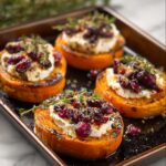 Sweet Potato Rounds with Goat Cheese & Cranberries offer a delightful blend of sweet and savory flavors, featuring tender roasted sweet potatoes topped with creamy goat cheese, tangy dried cranberries, and a touch of honey and balsamic glaze. This easy-to-make appetizer or snack is perfect for gatherings or a flavorful bite any time.
