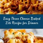 This Three Cheese Baked Ziti is a comforting Italian-American classic featuring al dente ziti pasta baked in a rich marinara sauce and a blend of creamy ricotta, mozzarella, and Parmesan cheeses. It’s easy to prepare, perfect for a hearty family dinner, and can be customized with meat or made ahead for convenience.