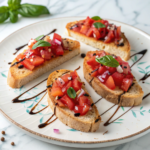 A classic Italian appetizer featuring fresh, juicy tomatoes combined with aromatic basil, garlic, and red onion, served atop toasted baguette or ciabatta slices. This Tomato Bruschetta is quick to prepare and perfect for sharing as a flavorful starter or light snack.