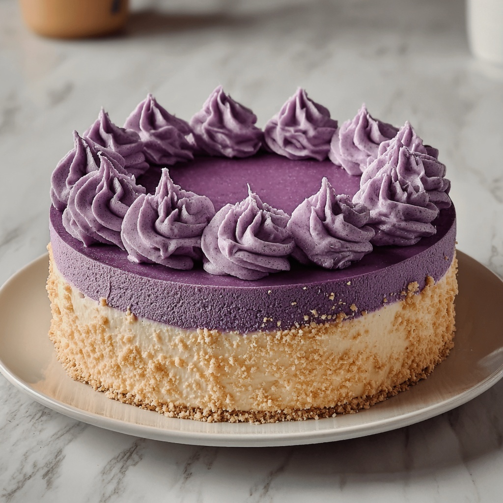 Adding garnishes can really make your Ube Cheesecake Recipe feel special and festive. Consider a generous dollop of freshly whipped cream for extra creaminess, or sprinkle toasted coconut flakes to enhance the tropical flavors and add a wonderful crunch. Fresh berries or edible flowers can also add a lovely contrast in both color and taste.