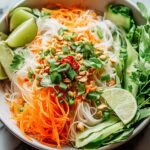 A refreshing Vietnamese Noodle Salad featuring tender rice noodles tossed with crisp vegetables, fresh herbs, and a tangy, flavorful dressing made with fish sauce, lime juice, and sesame oil. This light and vibrant salad is perfect for a healthy summer meal or a quick lunch, served cold or at room temperature with a satisfying crunch from roasted peanuts.