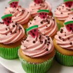 - Frost Cupcakes: Once the cupcakes are completely cooled, spread or pipe the watermelon frosting evenly over each cupcake.